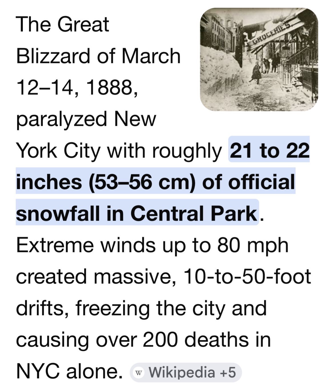 Blizzard of 1888 – could this be NYC Monday?