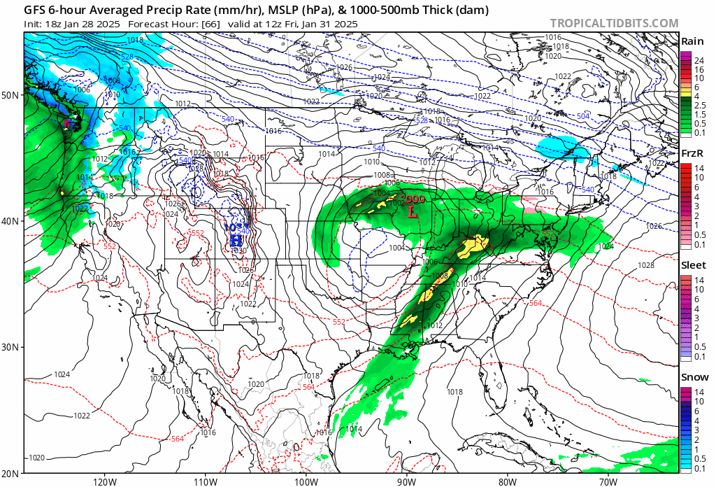 ContentWeatherGuy @ContentWxGuy We can see a reason to bank on a sliding low that has a forced redevelopment to the established secondary. HP keeps the cold in place & holds the low back so kickers can catch up. Ejection timing dictates tracking. An onset snow to ice to rain city/coast scenario? N&W hvy snow?