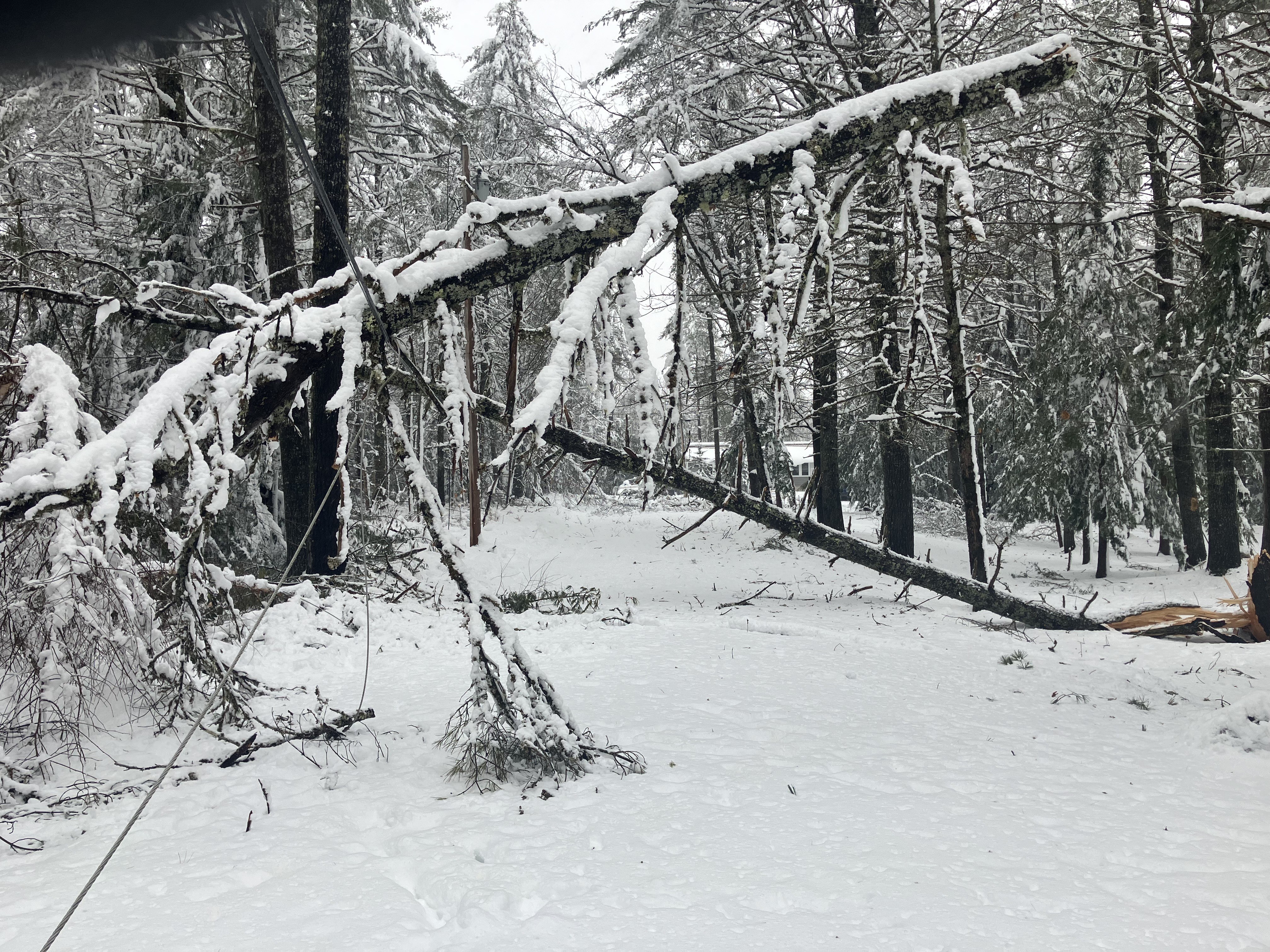 Just got cable back after April 4th storm. Power was out for 4 1/2 days. Poor cell service still. 16” pasty wet heavy snow here in Southwest Maine. Nice now, snow gone, working on the mess. Photo is the road in front of my house after the storm.
