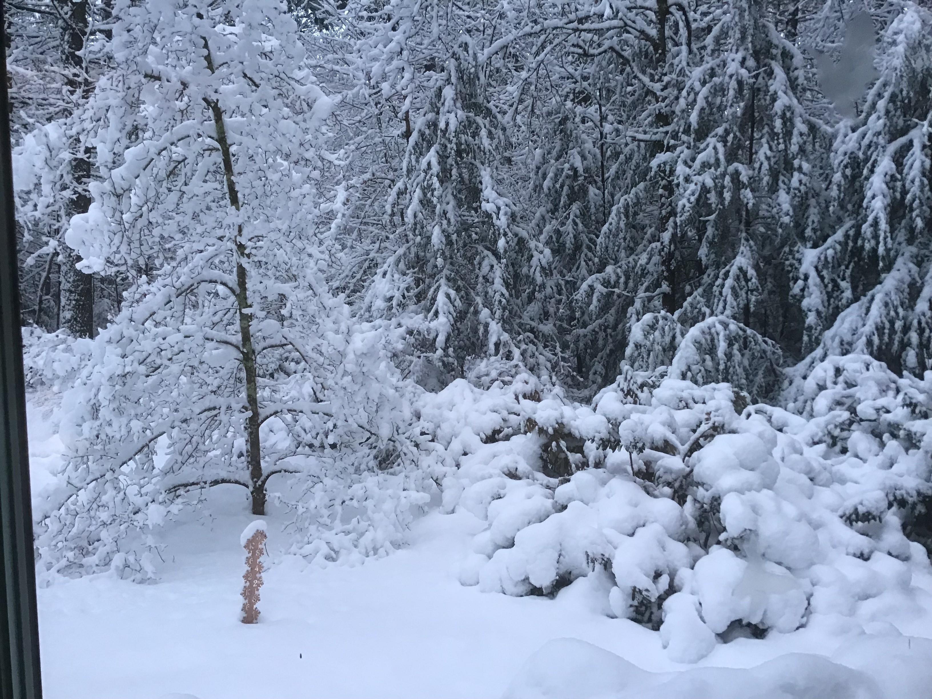 Bare ground yesterday, forecast was 6-10”, 14” on the ground now, snowing still and no sign Of stopping soon.