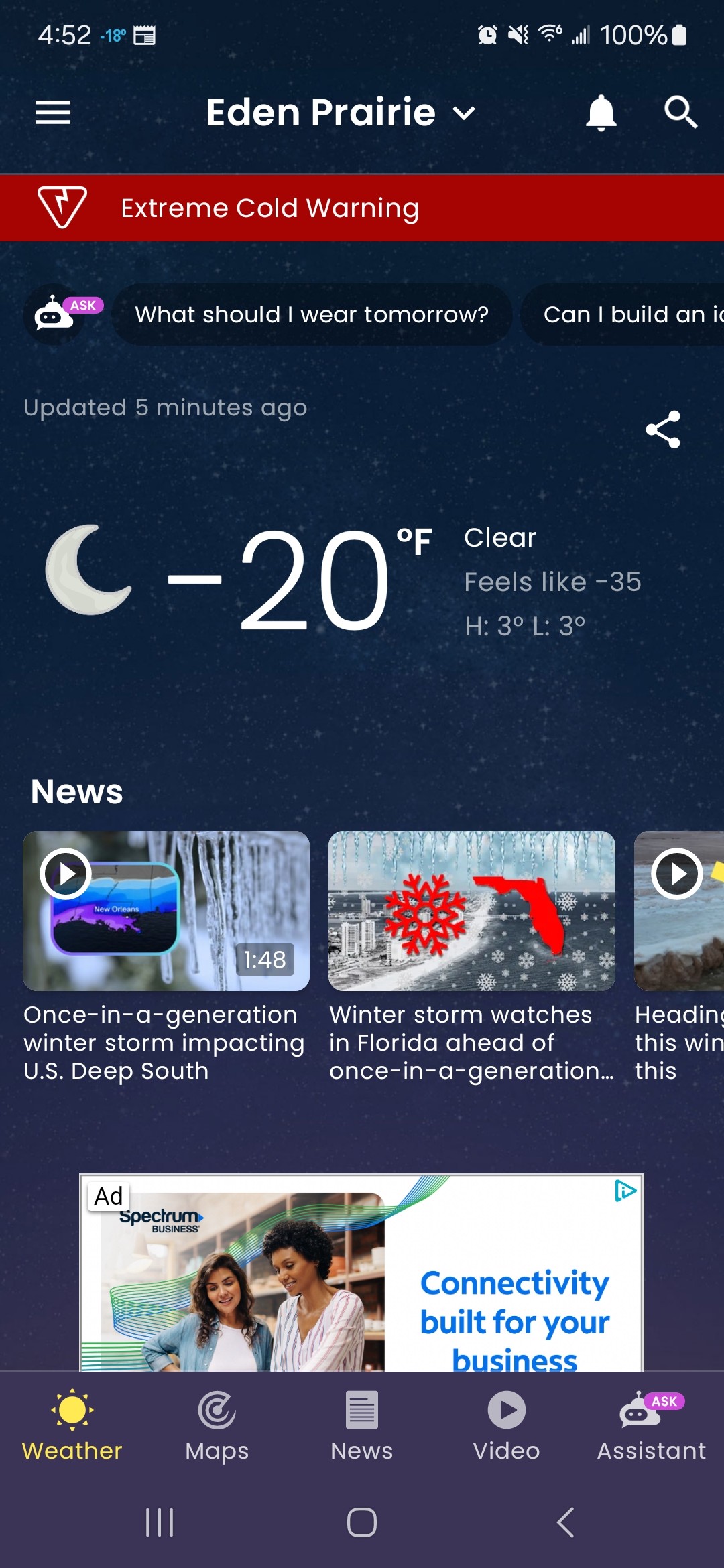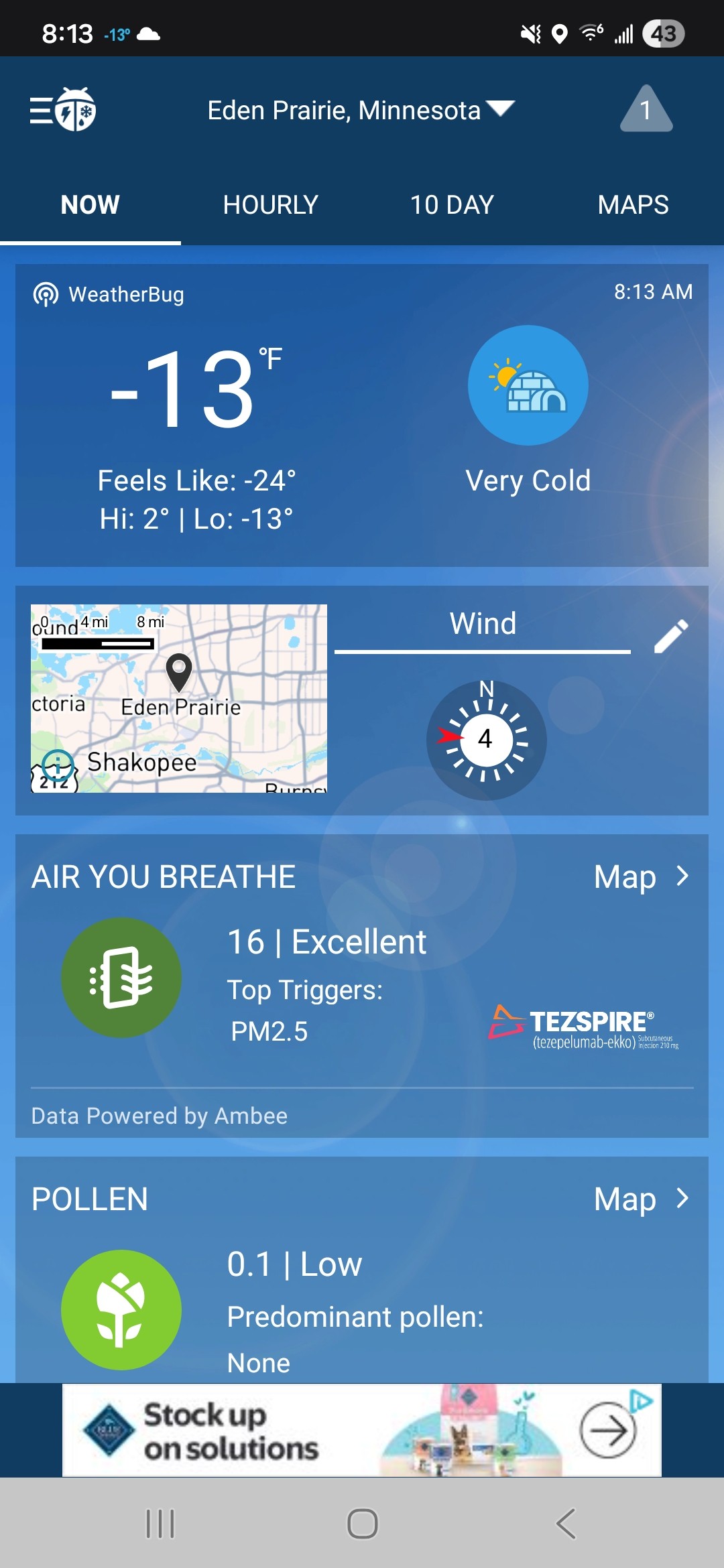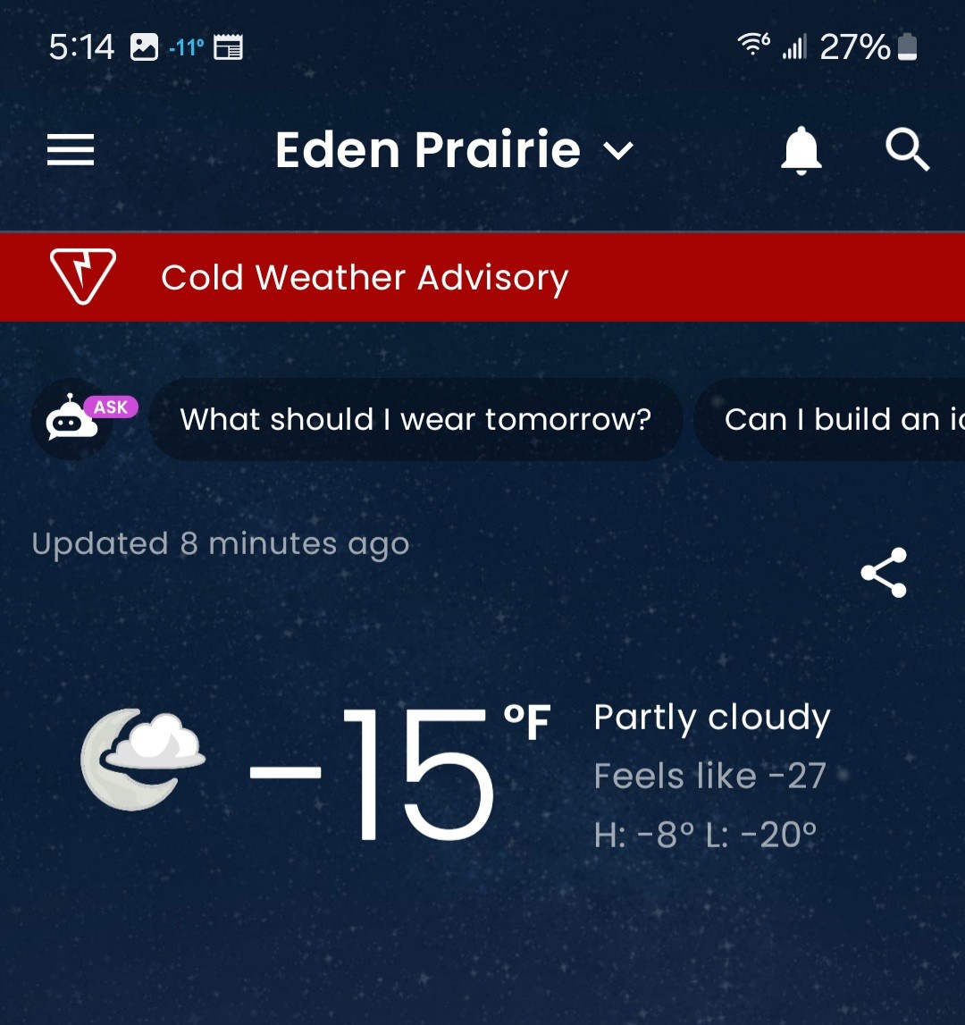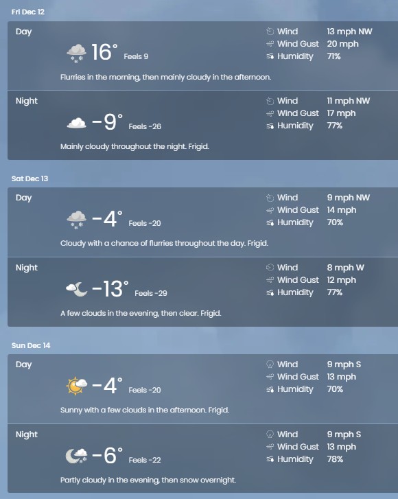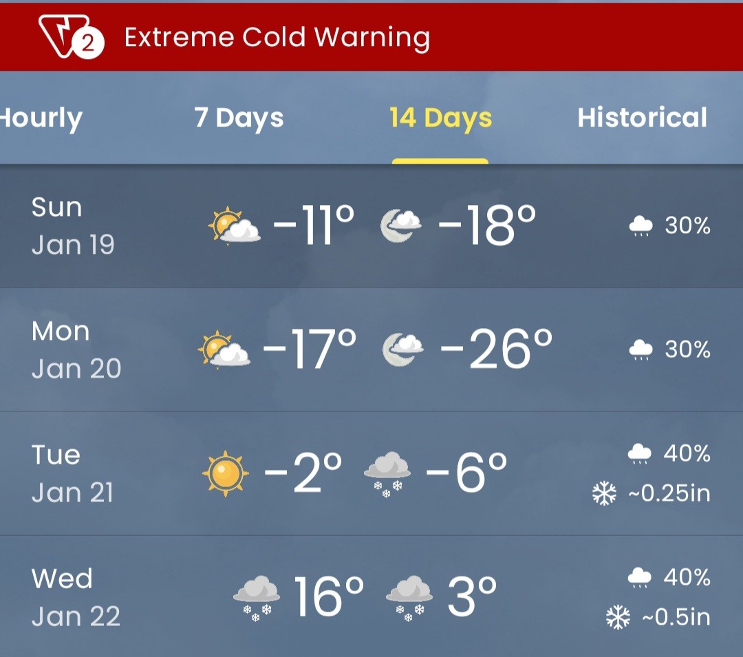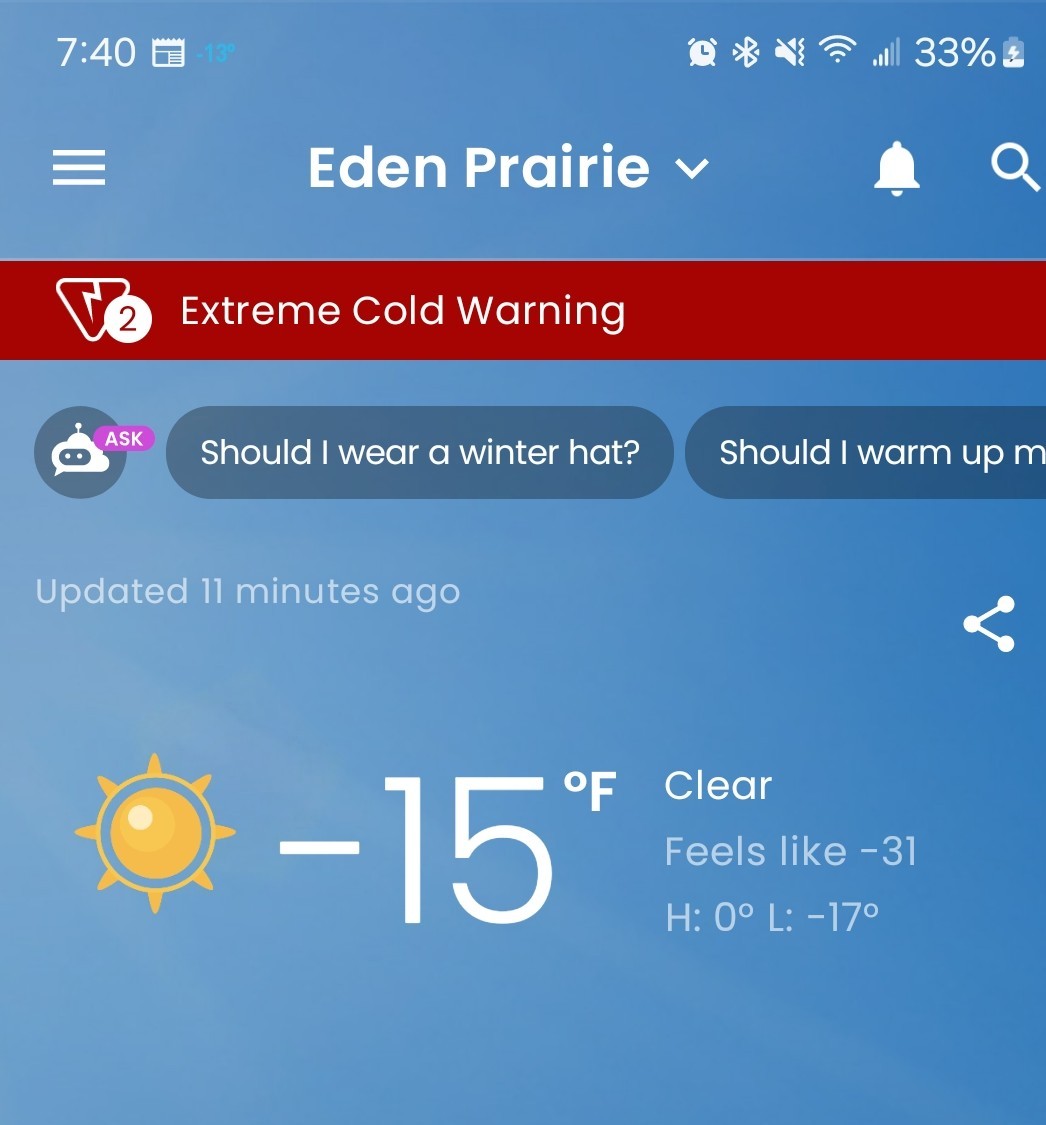 Its cold up north. -40 WC just outside Minneapolis We warm up to -12 this afternoon