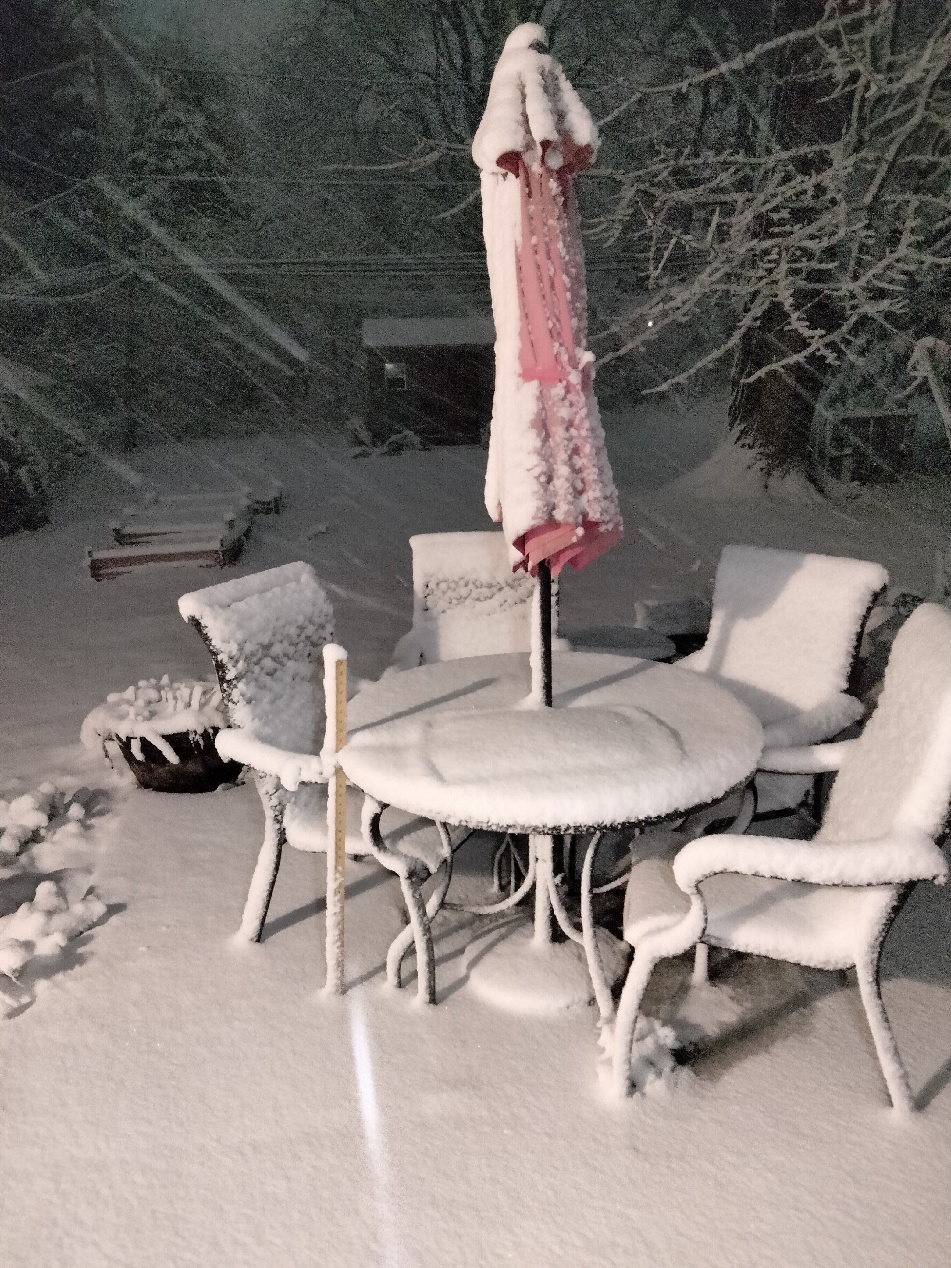 About 3″ so far here in SE PA. Put out meterstick for kicks. You can actually see it accumulating sideways on it. Snow off and on horizontal. Might make remote reading difficult hahahaha 😂